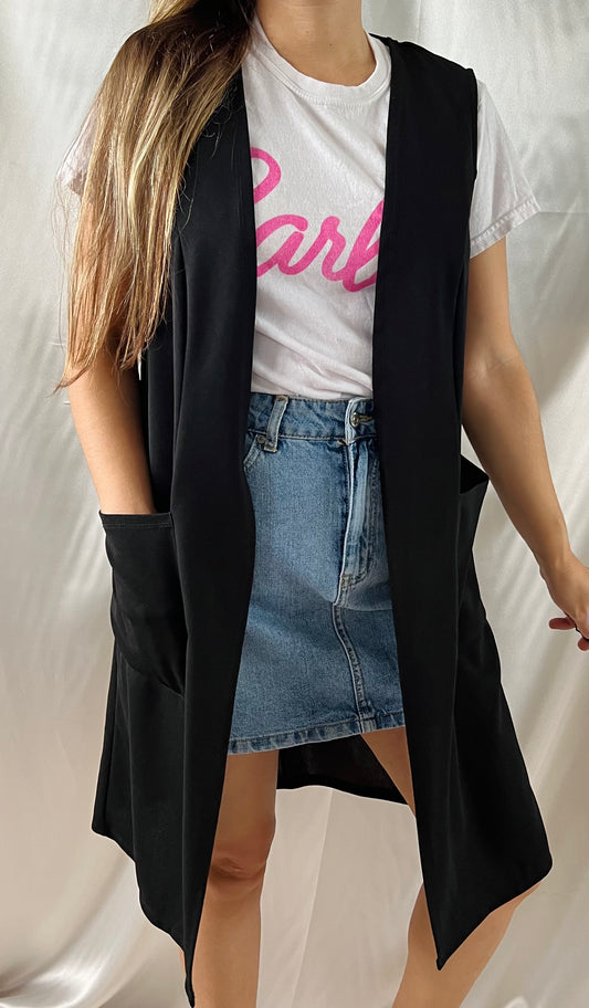 Sold outTHRIFT - LONG BLACK VEST