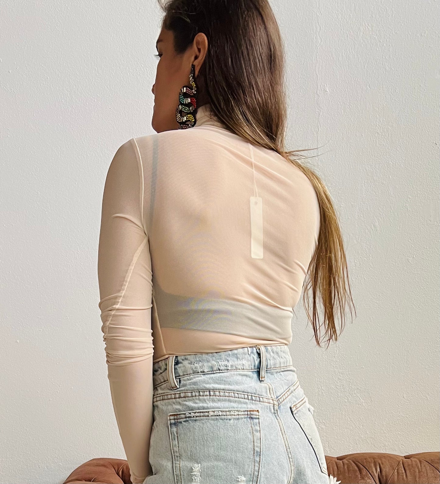 Turtleneck. Runs true to size. Model is wearing size Small.